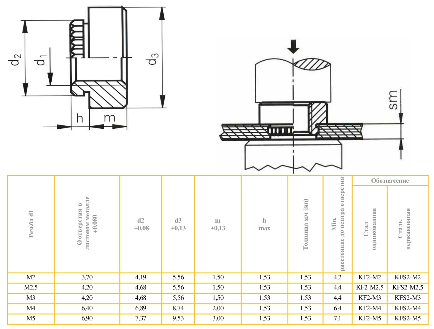 KF2-M5 et Гайка запрессовочная резьбовая для печатных плат